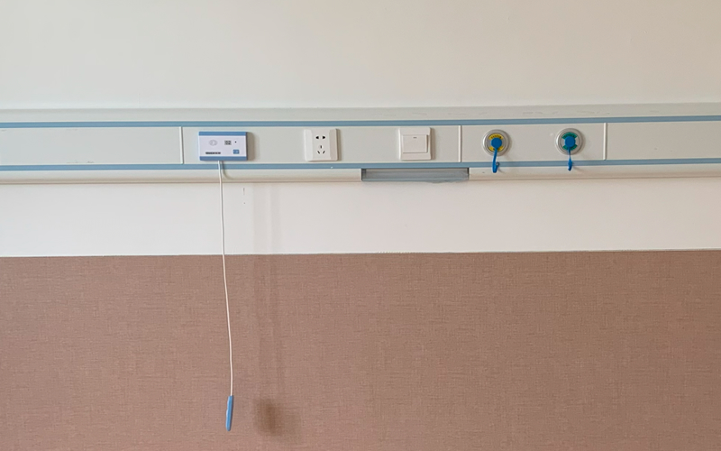病房分为2人间和3人间,每个床头配置一个氧气终端、一个吸引终端、一个呼叫器、一个86五孔插座、一个阅读灯和开关。