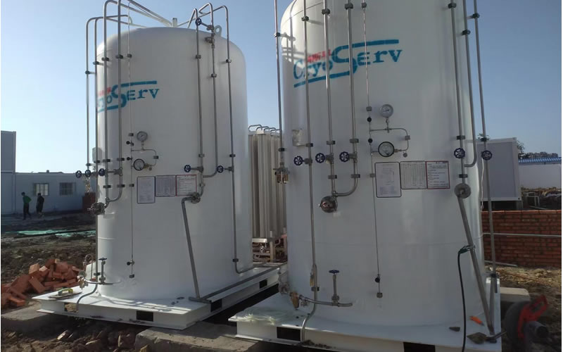 该方舱医院的氧气主要供应源采用两个五立方液态氧储罐供氧。