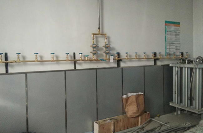 氧气管道管道在接入病房后,再由阀门与氧气终端链接,以至于每张病床的床头都有条形铝合金设备带用以安装氧气终端或者氧气维修阀门。