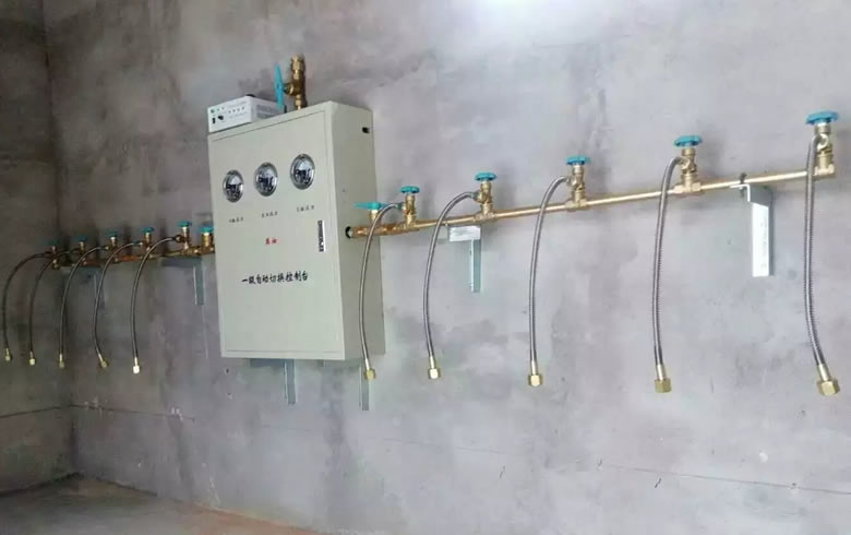 1、氧源部分:根据用氧量的大小来选择氧氧,一般情况下,汇流排即可满足用氧需求,采用2、3、4、5瓶为一组共二组,其中一组使用一组备用,每瓶均有截止阀,当一组气瓶压力低于规定范围时能自动声光报警。通过把氧气减压至0.2~0.4MPa(可调)后,经过病区氧气管道输送到病房终端,最后通过湿化器上流量调节开关再次减压后供病人吸氧。用氧量稍大一些的可以选用分子筛制氧机供氧。