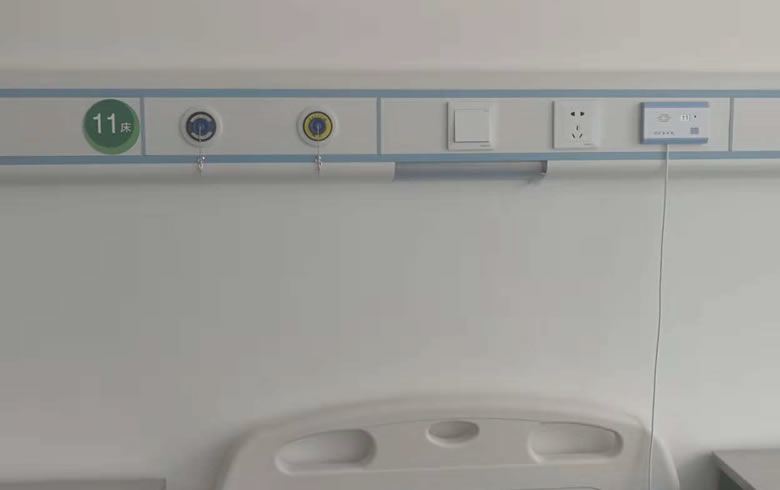 在每个需要的地方,比如手术室、病房等等,用户终端主要是设置在各种需要的地方,用时只需将接线插入插座即可,即可进行正常输氧。报警器是测量氧气的纯度和安全性,以及药量的变化,主要安装在护士台上,随时监测氧气的运行情况。