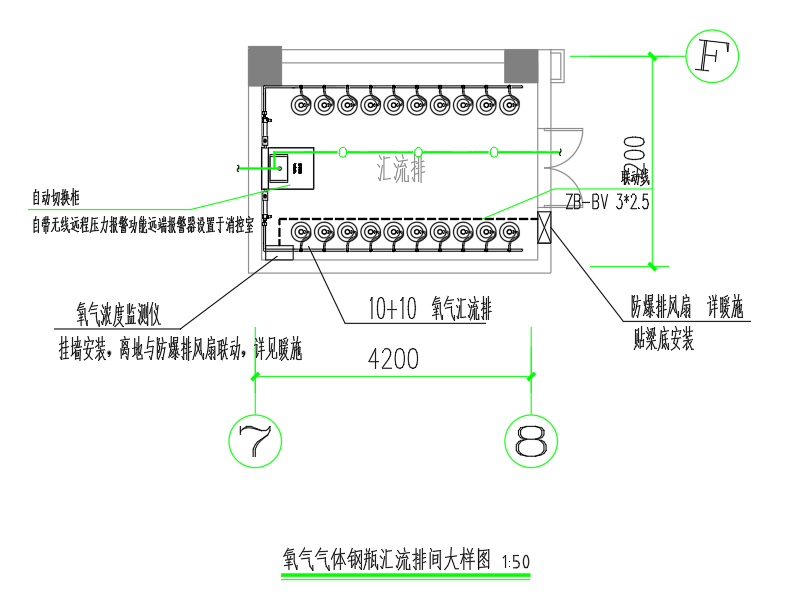 建筑本身的耐火等级不应低于三级,机房内还需配置机械事故通风设施,以备不时之需。良好的通风环境是汇流排间的另一项基本要求,氧浓度监控仪应与事故通风设施形成联动,确保在氧浓度异常时,能够及时启动通风措施,避免危险的发生。通风设备须选用防爆电机,进一步确保安全。
