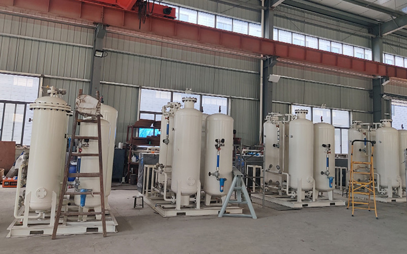 2.处理后的压缩空气通过进气阀进入装有分子筛的吸附塔。分子筛是一种特殊的材料,可以有选择地吸收空气中的氮气和其他气体,并允许氧气通过。这样,从吸附塔中流出的气体就是高纯度的氧气。