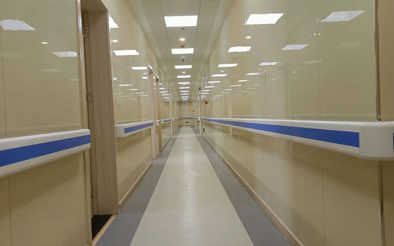 走廊安装的铝合金PVC防撞扶手,方便行走不便的人使用。