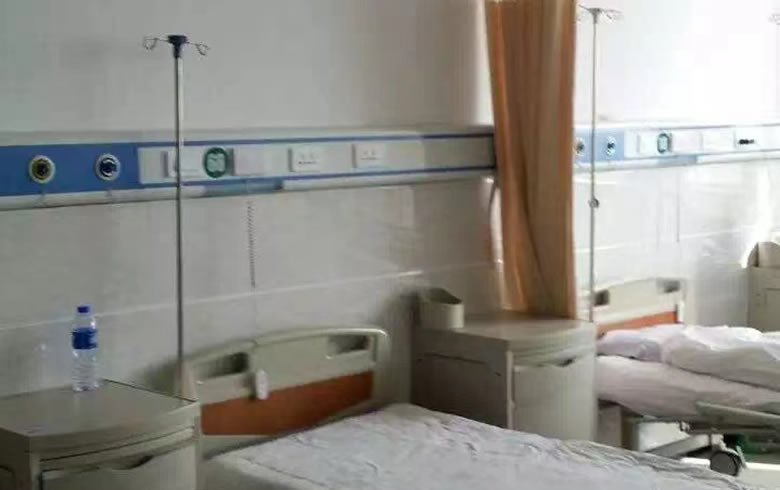 病房安装豪华型铝合金设备带,每个病床配置一个氧气插口、一个吸引插口、一个呼叫对讲分机、电源插座和床头照明灯。